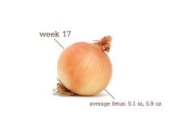 Size of baby: Baby is the size of a Pomegranate or Onion or Turnip, it all depends on the App you are on. Your baby weighs 5 ounces now (about as much as a turnip), and she's around 5 inches long from head to bottom. She can move her joints, and her sweat glands are starting to develop. Your baby's skeleton is changing from soft cartilage to bone, and the umbilical cord – her lifeline to the placenta – is growing stronger and thicker